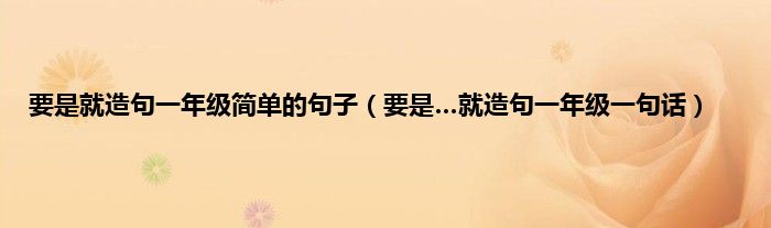 大家好,小科来为大家解答以上问题。要是就造句一年级简单的句子,要是…就造句一年级一句话很多人还不知道,现在让我们一起来看看吧!
