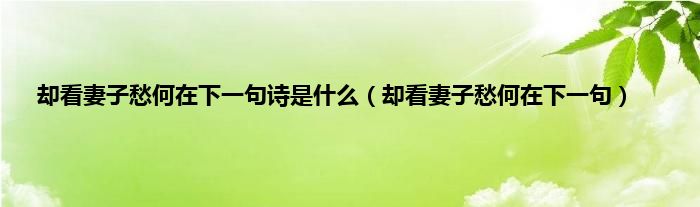 大家好,小科来为大家解答以上问题。却看妻子愁何在下一句诗是什么,却看妻子愁何在下一句很多人还不知道,现在让我们一起来看看吧!