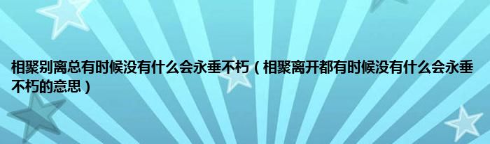 大家好,小科来为大家解答以上问题。相聚别离总有时候没有什么会永垂不朽,相聚离开都有时候没有什么会永垂不朽的意思很多人还不知道,现在让我们一起来看看吧!
