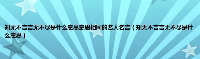 1、 知无不言言无不尽是什么意思:“答案是:没有什么是你知道时不想说的,也没有什么是你想说时不想说完的。