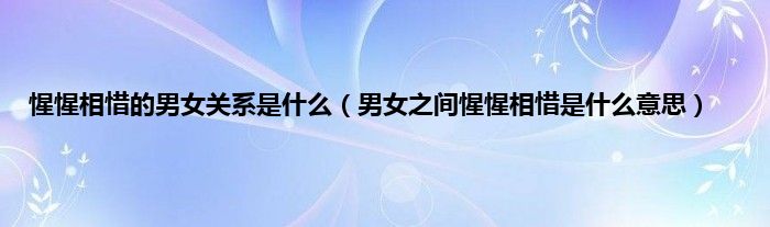 1、 男女之间惺惺相惜是什么意思:“答案是:相互欣赏意味着有着相同个性、兴趣和境遇的人彼此相爱、同情和支持。