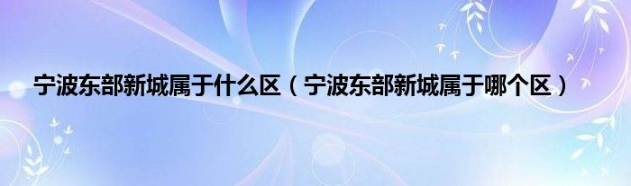 大家好,小科来为大家解答以上问题。宁波东部新城属于什么区,宁波东部新城属于哪个区很多人还不知道,现在让我们一起来看看吧!