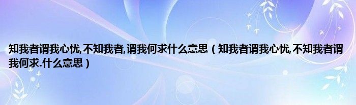 大家好,小科来为大家解答以上问题。知我者谓我心忧,不知我者,谓我何求什么意思,知我者谓我心忧,不知我者谓我何求.什么意思很多人还不知道,现在让我们一起来看看吧!