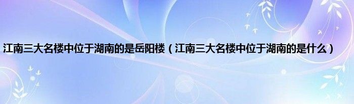 大家好,小科来为大家解答以上问题。江南三大名楼中位于湖南的是岳阳楼,江南三大名楼中位于湖南的是什么很多人还不知道,现在让我们一起来看看吧!