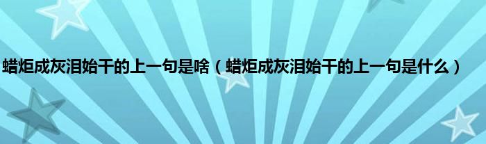 大家好,小科来为大家解答以上问题。蜡炬成灰泪始干的上一句是啥,蜡炬成灰泪始干的上一句是什么很多人还不知道,现在让我们一起来看看吧!
