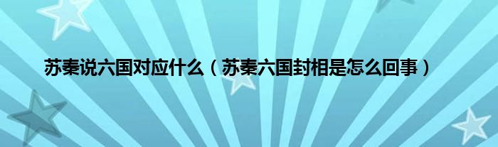 大家好,小科来为大家解答以上问题。苏秦说六国对应什么,苏秦六国封相是怎么回事很多人还不知道,现在让我们一起来看看吧!