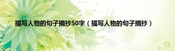 大家好,小科来为大家解答以上问题。描写人物的句子摘抄50字,描写人物的句子摘抄很多人还不知道,现在让我们一起来看看吧!