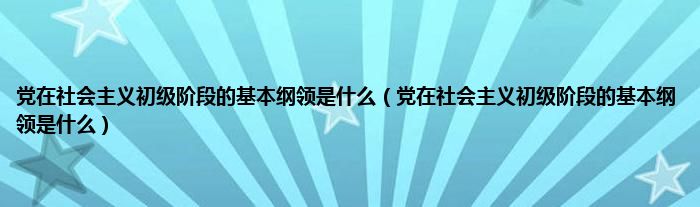 大家好,小科来为大家解答以上问题。党在社会主义初级阶段的基本纲领是什么,党在社会主义初级阶段的基本纲领是什么很多人还不知道,现在让我们一起来看看吧!
