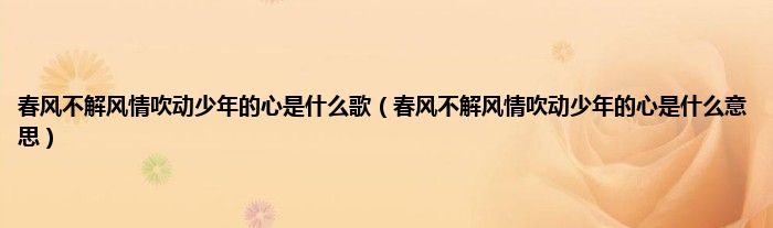 大家好,小科来为大家解答以上问题。春风不解风情吹动少年的心是什么歌,春风不解风情吹动少年的心是什么意思很多人还不知道,现在让我们一起来看看吧!
