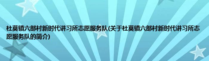 大家好,杜莫镇六部村新时代讲习所志愿服务队,关于杜莫镇六部村新时代讲习所志愿服务队的简介很多人还不知道,现在让我们一起来看看吧!