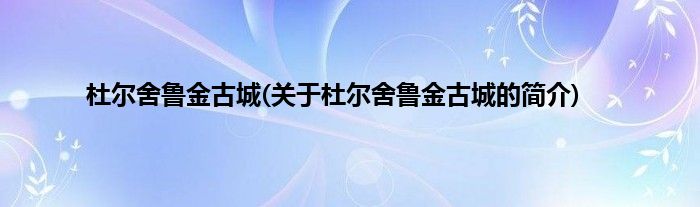 大家好,杜尔舍鲁金古城,关于杜尔舍鲁金古城的简介很多人还不知道,现在让我们一起来看看吧!