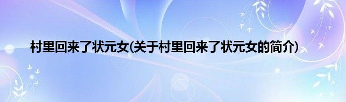 本文关于村里回来了状元女的简介就讲解完毕,希望对大家有所帮助。