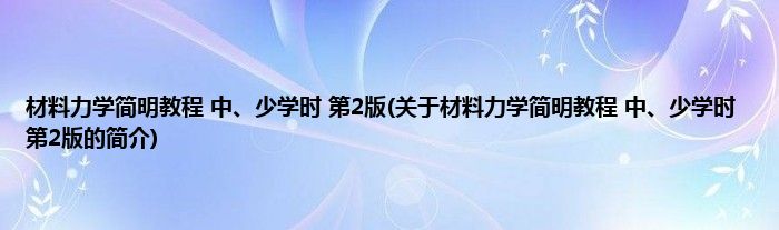 本文关于材料力学简明教程 中、少学时 第2版的简介就讲解完毕,希望对大家有所帮助。