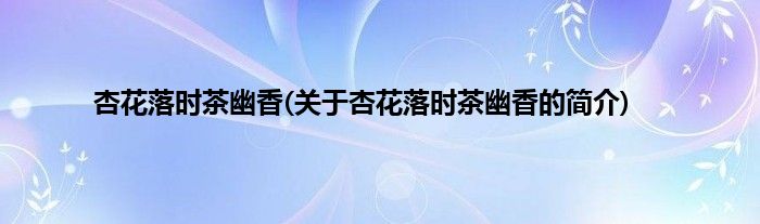 本文关于杏花落时茶幽香的简介就讲解完毕,希望对大家有所帮助。