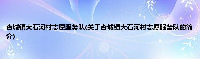 本文关于杏城镇大石河村志愿服务队的简介就讲解完毕,希望对大家有所帮助。