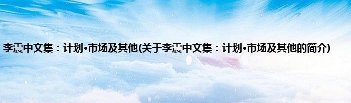 本文关于李震中文集:计划·市场及其他的简介就讲解完毕,希望对大家有所帮助。