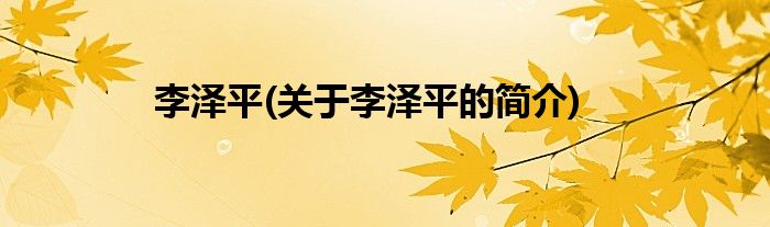 大家好,李泽平,关于李泽平的简介很多人还不知道,现在让我们一起来看看吧!