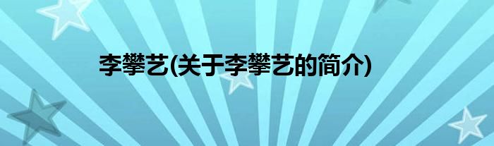 本文关于李攀艺的简介就讲解完毕,希望对大家有所帮助。