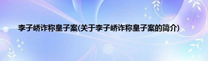 本文关于李子峤诈称皇子案的简介就讲解完毕,希望对大家有所帮助。