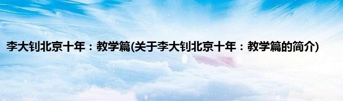 1、 《李大钊北京十年:教学篇》是中央编译出版社出版的图书。