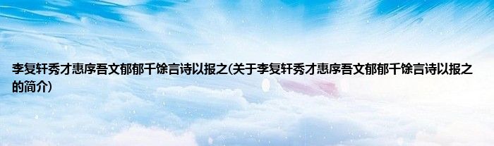 本文关于李复轩秀才惠序吾文郁郁千馀言诗以报之的简介就讲解完毕,希望对大家有所帮助。