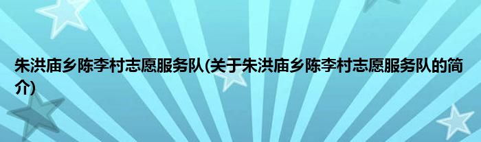 本文关于朱洪庙乡陈李村志愿服务队的简介就讲解完毕,希望对大家有所帮助。