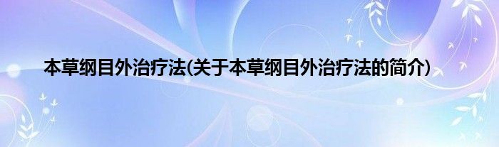 大家好,本草纲目外治疗法,关于本草纲目外治疗法的简介很多人还不知道,现在让我们一起来看看吧!