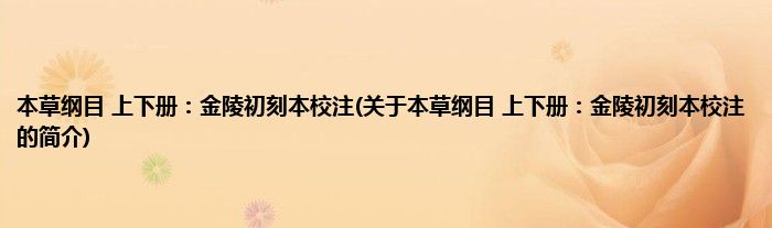 本文关于本草纲目。上下册:金陵初刻本校注的简介就讲解完毕,希望对大家有所帮助。