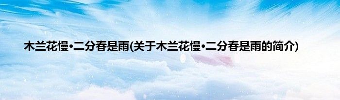 大家好,木兰花慢·二分春是雨,关于木兰花慢·二分春是雨的简介很多人还不知道,现在让我们一起来看看吧!