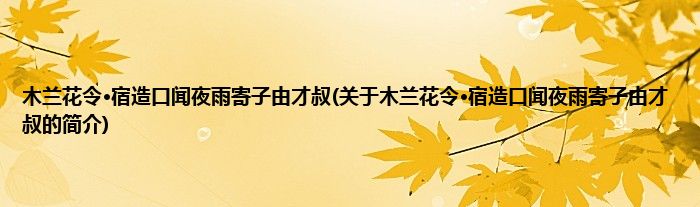 本文关于木兰花令·宿造口闻夜雨寄子由才叔的简介就讲解完毕,希望对大家有所帮助。