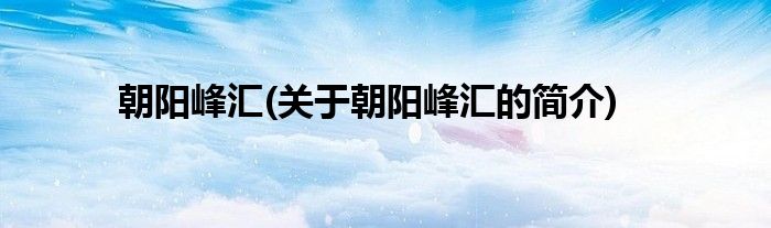 大家好,朝阳峰汇,关于朝阳峰汇的简介很多人还不知道,现在让我们一起来看看吧!