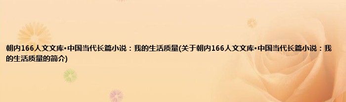 本文关于朝内166人文文库·中国当代长篇小说:我的生活质量的简介就讲解完毕,希望对大家有所帮助。