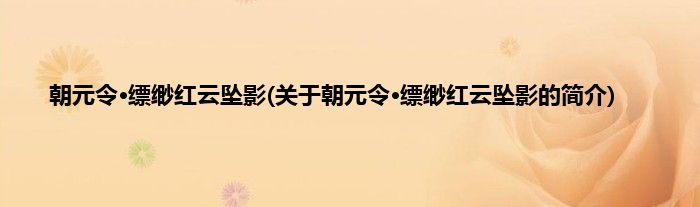 本文关于朝元令·缥缈红云坠影的简介就讲解完毕,希望对大家有所帮助。