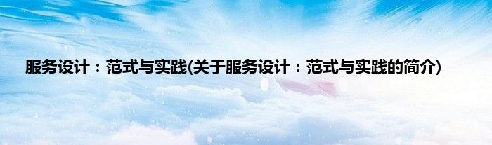 本文关于服务设计:范式与实践的简介就讲解完毕,希望对大家有所帮助。