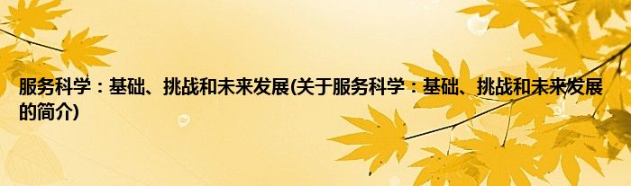 大家好,服务科学:基础、挑战和未来发展,关于服务科学:基础、挑战和未来发展的简介很多人还不知道,现在让我们一起来看看吧!