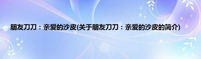 大家好,朋友刀刀:亲爱的沙皮,关于朋友刀刀:亲爱的沙皮的简介很多人还不知道,现在让我们一起来看看吧!