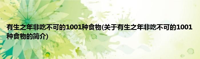 大家好,有生之年非吃不可的1001种食物,关于有生之年非吃不可的1001种食物的简介很多人还不知道,现在让我们一起来看看吧!