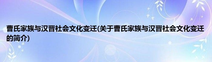 本文关于曹氏家族与汉晋社会文化变迁的简介就讲解完毕,希望对大家有所帮助。