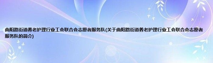 本文关于曲阳路街道养老护理行业工会联合会志愿者服务队的简介就讲解完毕,希望对大家有所帮助。