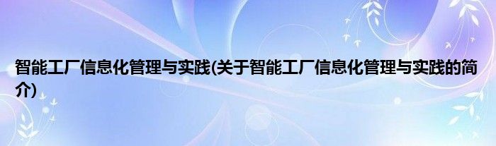 本文关于智能工厂信息化管理与实践的简介就讲解完毕,希望对大家有所帮助。