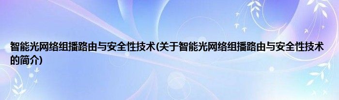 大家好,智能光网络组播路由与安全性技术,关于智能光网络组播路由与安全性技术的简介很多人还不知道,现在让我们一起来看看吧!