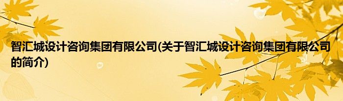 大家好,智汇城设计咨询集团有限公司,关于智汇城设计咨询集团有限公司的简介很多人还不知道,现在让我们一起来看看吧!