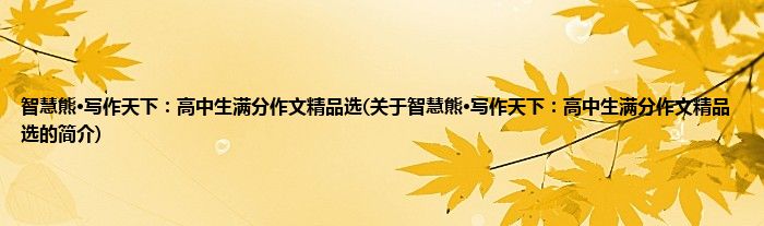 本文关于智慧熊·写作天下:高中生满分作文精品选的简介就讲解完毕,希望对大家有所帮助。