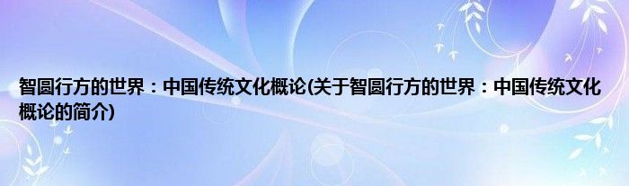 本文关于智圆行方的世界:中国传统文化概论的简介就讲解完毕,希望对大家有所帮助。