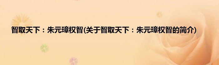 本文关于智取天下:朱元璋权智的简介就讲解完毕,希望对大家有所帮助。