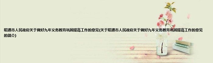 1、 昭通市人民政府关于做好九年义务教育巩固提高工作的意见由昭通市人民政府颁布并实施。