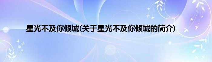 大家好,星光不及你倾城,关于星光不及你倾城的简介很多人还不知道,现在让我们一起来看看吧!