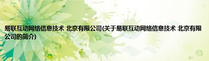 本文关于易联互动网络信息技术 北京有限公司的简介就讲解完毕,希望对大家有所帮助。