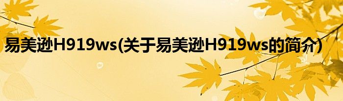 大家好,易美逊H919ws,关于易美逊H919ws的简介很多人还不知道,现在让我们一起来看看吧!