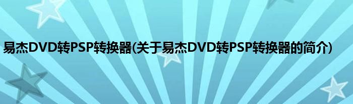 本文关于易杰DVD转PSP转换器的简介就讲解完毕,希望对大家有所帮助。